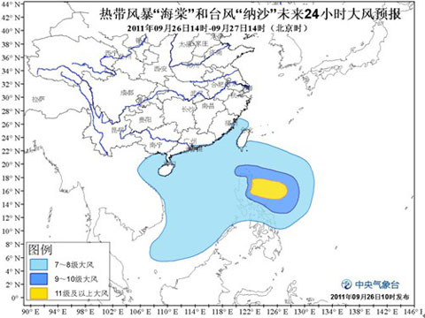 中央氣象臺(tái)9月26日10時(shí)繼續(xù)發(fā)布臺(tái)風(fēng)藍(lán)色預(yù)警: