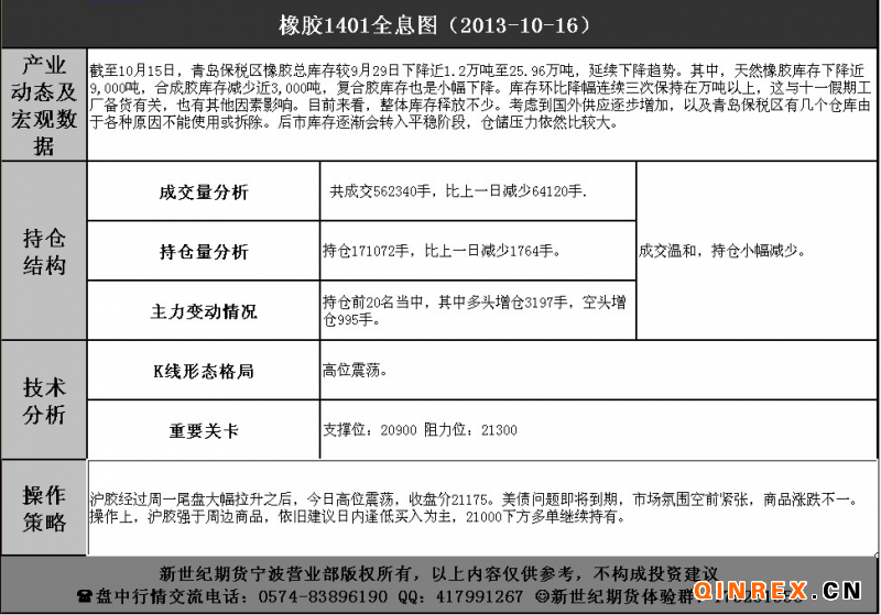 天膠早評(píng) 20131016