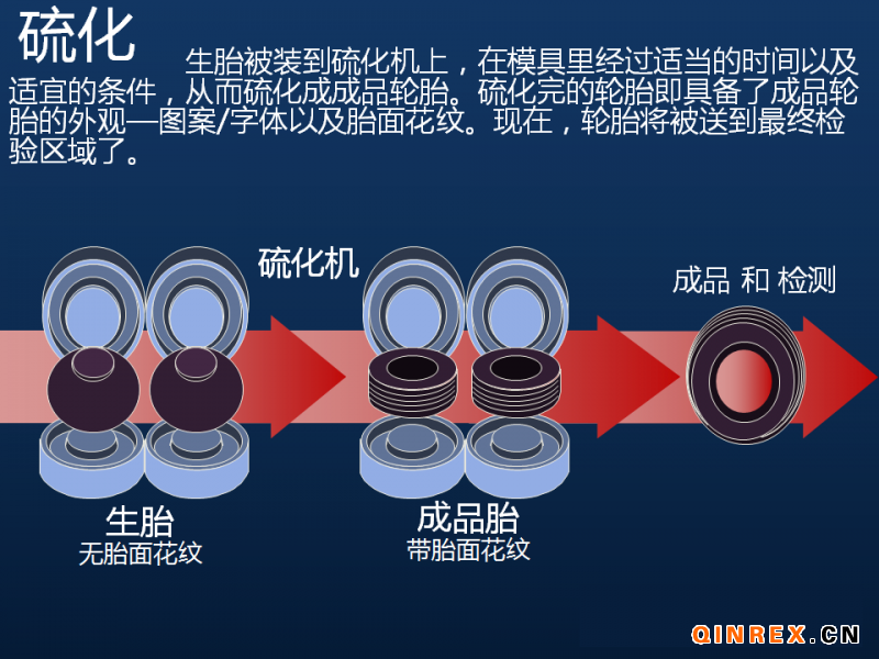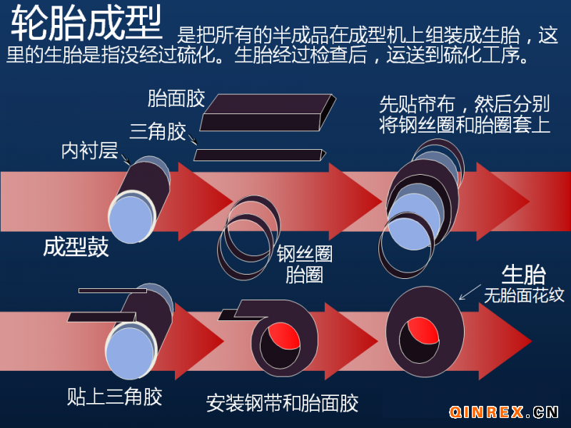 成型,就好像包包子、揉饅頭一樣,把輪胎的形狀做出來。經(jīng)過這道工序,輪胎也還是“生”的。