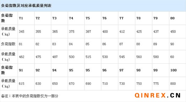 負(fù)荷指數(shù)是把一條輪胎所能承受的最大負(fù)荷以代號(hào)的形式表示,來表征輪胎承受負(fù)荷的能力,數(shù)值越大,輪胎所能承受的負(fù)荷也越大。負(fù)荷指數(shù)及對(duì)應(yīng)承載質(zhì)量列表如下。