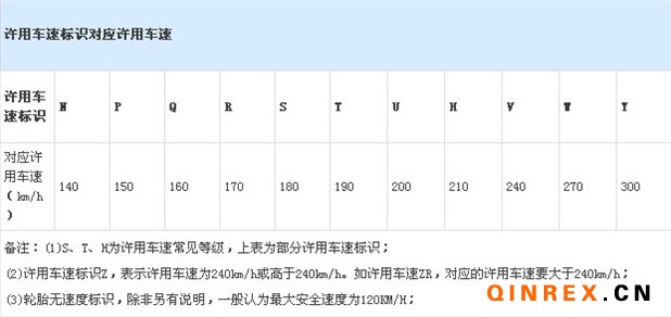 許用車速表示對(duì)車輛速度的極限限制,超過可能引起爆胎,速度級(jí)別越高,輪胎設(shè)計(jì)及對(duì)材料的要求也就越高。許用車速等級(jí)列表如下所示: