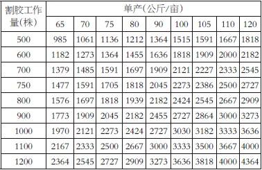 以云南為例,每畝33株橡膠樹,單產(chǎn)平均105公斤/畝,每個工人負責750株,三天一刀,一個割膠工人一年的割膠總量為2.39噸,而割膠分成比例一般在五五和六四,這里按六四分成,膠水折干膠價以12元/公斤來計算,其可得收入為12×1000×2.39×60%=17208(元/年),折1434元/月。考慮到一年割膠時間為8個月,因此割膠期內(nèi)的平均收入為2151元/月。