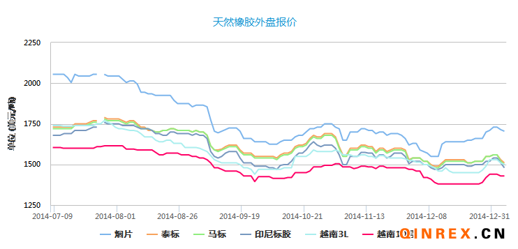 外盤報價同樣走跌,產區(qū)供應充裕,據悉泰國南部洪水災害基本退去,生產逐步恢復。
