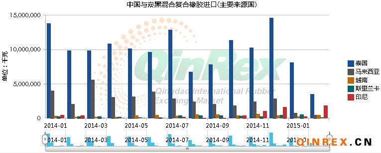 1、中國與炭黑混合復合橡膠進口(主要來源國)