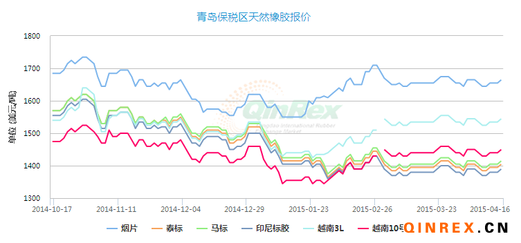 ●據(jù)中國橡膠信息貿易網最新庫存統(tǒng)計顯示,截至2015年4月16日,青島保稅區(qū)橡膠總庫存微增0.6%至21.95萬噸。具體品種來看,除合成橡膠庫存略有下降外,標膠、復合膠均有增加。從本站近期調研的情況來看,目前部分倉庫的出庫量有所增加,入庫基本平穩(wěn)。