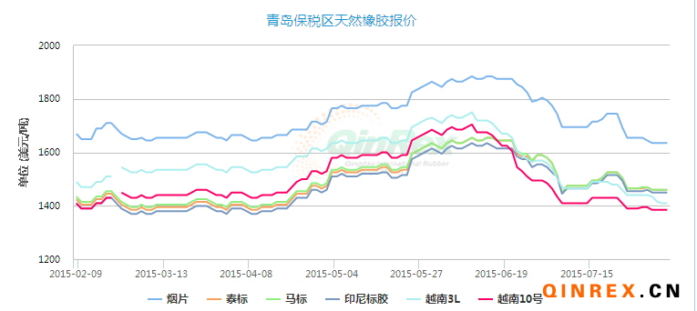 青島保稅區(qū)天然橡膠市場(chǎng)一周行情綜述(8.3-8.7)