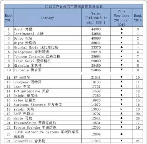 據(jù)外媒報道,經(jīng)過數(shù)個月的數(shù)據(jù)采集和驗證,同時與多家領(lǐng)先供應(yīng)商進行深度采訪,近日,《汽車制造》公布了2015年汽車零部件百強供應(yīng)商排名。該排名以2014/2015年度銷售額為依據(jù)進行排位。