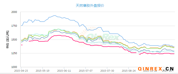 外盤報(bào)價(jià)小幅下滑,市場(chǎng)需求不足拖累價(jià)格走低,目前泰國(guó)產(chǎn)區(qū)處于雨季,影響割膠,后期雨季結(jié)束原料供應(yīng)預(yù)計(jì)增加,價(jià)格或?qū)⒗^續(xù)走低。