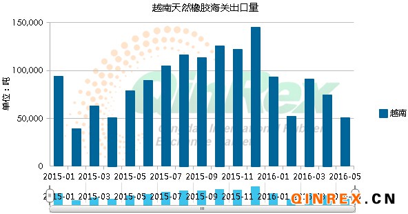 QinRex據(jù)越南6月14日消息,越南海關(guān)最新公布的數(shù)據(jù)顯示,越南2016年5月橡膠出口量為50,511噸,同比降35.7%,環(huán)比降32.2%。5月出口按排名前五名依次為中國(guó)25,739噸、印度5,887噸、馬來(lái)西亞4,459噸、韓國(guó)1,773噸、土耳其1,111噸。