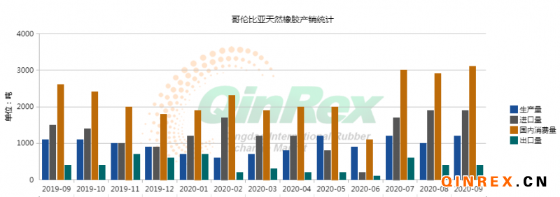 3、哥倫比亞天然橡膠產(chǎn)銷統(tǒng)計(jì)