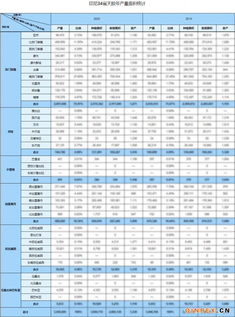 應(yīng)廣大客戶需求,中國橡膠信息貿(mào)易網(wǎng)-“QinRex數(shù)據(jù)決策系統(tǒng)”于2020年12月30日,新增印尼34省天膠年產(chǎn)量面積統(tǒng)計數(shù)據(jù)庫內(nèi)容。