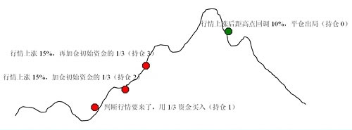 第二次加倉后,如果行情馬上回調(diào) 10% 或者上漲后距高點回調(diào) 10% ,平倉出局,本次投資結(jié)束。(持倉 0