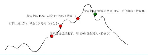 第一次加倉后,如果行情馬上回調(diào) 10% 或者上漲后距高點回調(diào) 10% ,平倉出局,本次投資結(jié)束