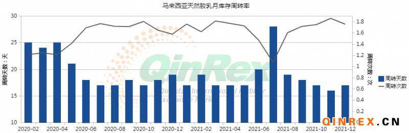 2、馬來西亞天然膠乳月庫存周轉(zhuǎn)率