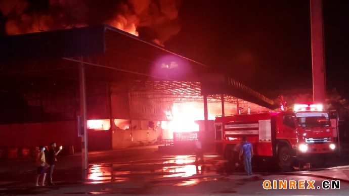 泰國武里南府一橡膠廠突發(fā)火災