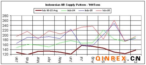印尼天然橡膠種植面積雖然是世界第一,但是單產(chǎn)較低,平均1噸/公頃.年。印尼橡膠各區(qū)域的產(chǎn)量主要分布在北蘇曼答臘、南蘇門答臘、西蘇曼答臘、西加里曼丹等區(qū)域。整個蘇門答臘島占總面積的75%,加里曼丹島占20%,主要分布在以棉蘭為中心的北蘇門答臘約占蘇門答臘的產(chǎn)量的30%,以居港為中心的南蘇門答臘占35%,加里曼丹島主要分布在昆甸和班加班千,另外,西蘇曼答臘的巴東和廖省也是主要產(chǎn)地。如果以赤道為界,赤道以南的地區(qū)占總面積的60%。蘇門答臘、爪哇一帶主產(chǎn)區(qū)都有強大的加工企業(yè)集群,巨港和棉蘭兩市的天然橡膠加工能力在120萬噸左右。而且企業(yè)規(guī)模都較大(年生膠加工能力2—6萬噸,平均為5萬噸/年,生膠質(zhì)量穩(wěn)定,多為米其林等大跨國輪胎公司所直接采用。