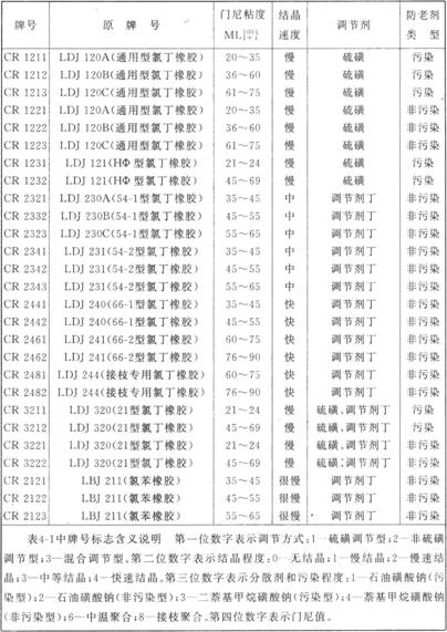 國產(chǎn)氯丁橡膠品種牌號和特性